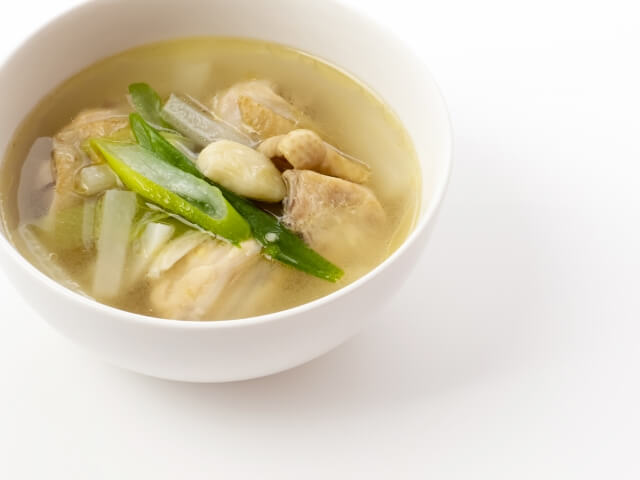 - 手鍋に油(分量外)を入れて鶏もも肉を炒め、ある程度火が入ったら長ネギを入れてさらに炒める。